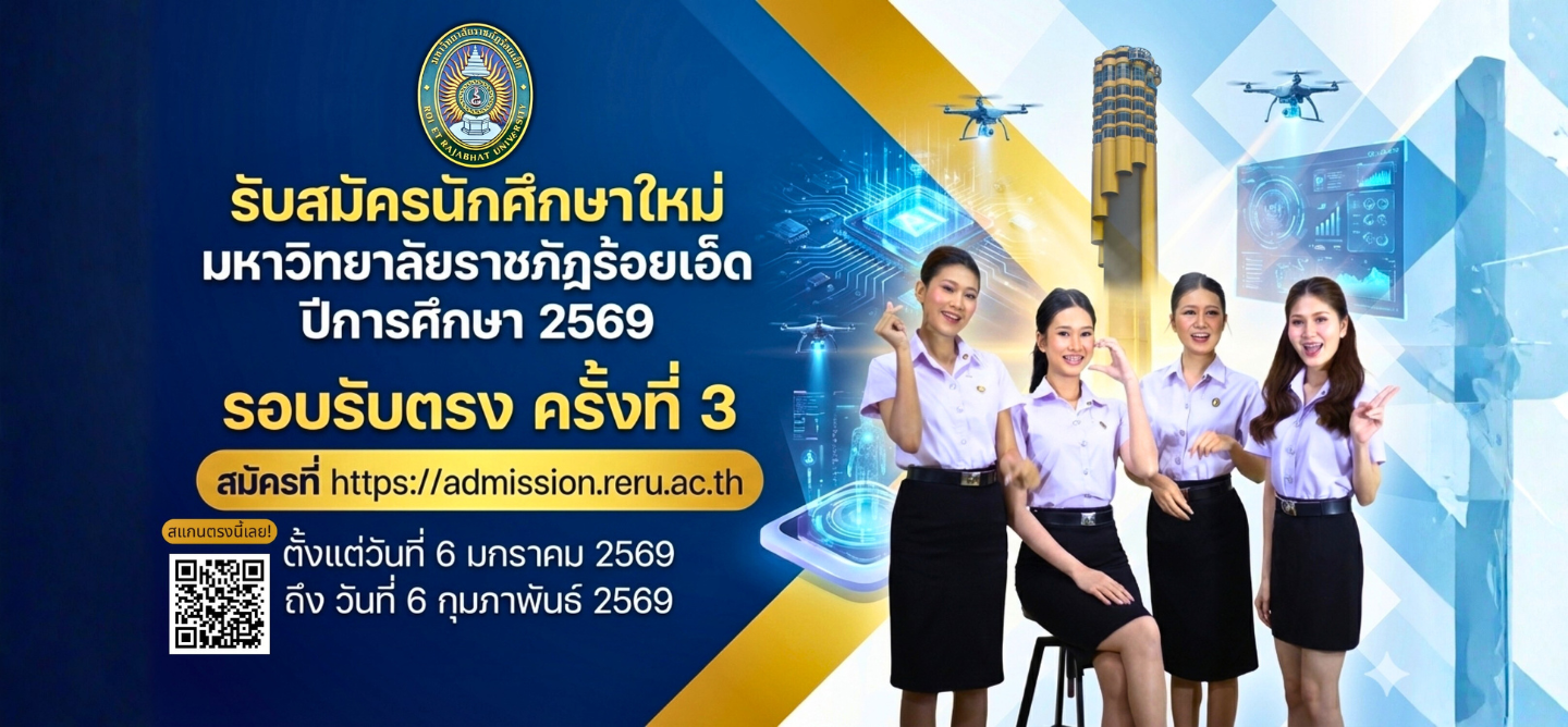 มหาวิทยาลัยราชภัฏร้อยเอ็ด เปิดรับสมัครนักศึกษา รอบรับตรง ครั้งที่ 2 สมัครออนไลน์ได้ที่ https://admission.reru.ac.th ตั้งแต่วันที่ 27 พ.ย. ถ ...