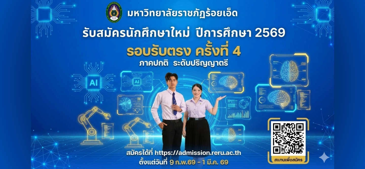 มหาวิทยาลัยราชภัฏร้อยเอ็ด เปิดรับสมัครนักศึกษาใหม่ รอบรับตรง ครั้งที่ 4 ปีการศึกษา 2569 ถึง 6 กุมภาพันธ์ 2569 นี้ สมัครเรียน