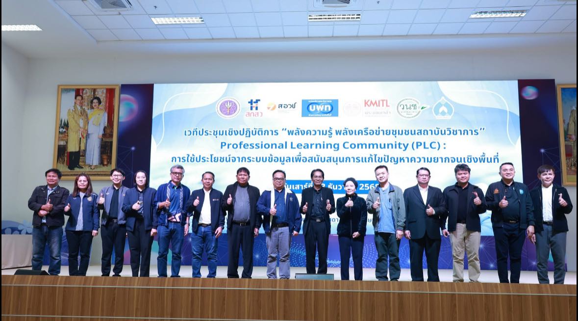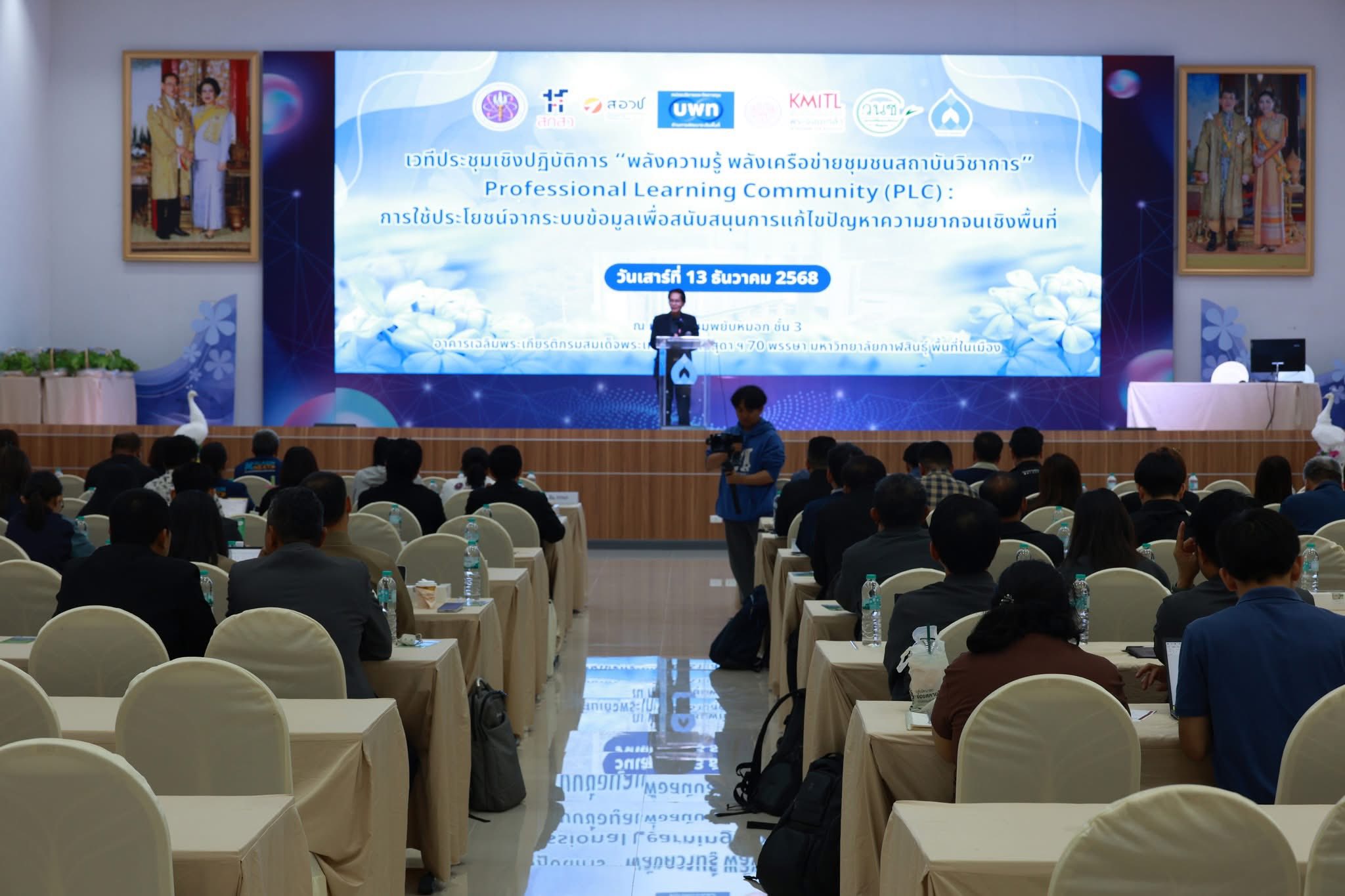ประชุมเชิงปฏิบัติการ “พลังความรู้ พลังเครือข่ายชุมชนสถาบันวิชาการ” Professional Learning Community (PLC) การใช้ประโยชน์จากระบบข้อมูลเพื่อสนับสนุนการแก้ไขปัญหาความยากจนเชิงพื้นที่ เมื่อวันเสาร์ ที่13 ธันวาคม 2568