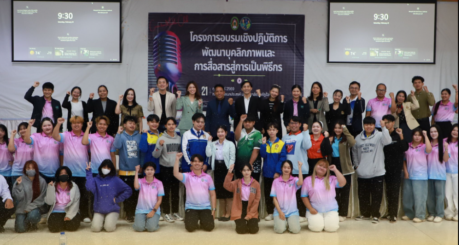 เมื่อวันเสาร์ ที่ 21 กุมภาพันธ์ พ.ศ. 2569 ณ อาคารอเนกประสงค์ มหาวิทยาลัยราชภัฏร้อยเอ็ด งานวิเทศสัมพันธ์และการสื่อสาร กองกลาง สำนักงานอธิการบดี ร่วมกับชมรมสื่อสร้างสรรค์ จัดโครงการอบรมเชิงปฏิบัติการ “พัฒนาบุคลิกภาพและการสื่อสารสู่การเป็นพิธีกรอย่างมืออาชีพ” โดยได้รับเกียรติจาก ผู้ช่วยศาสตราจารย์ ดร.วิชิต กำมันตะคุณ อธิการบดีมหาวิทยาลัยราชภัฏร้อยเอ็ด เป็นประธานในพิธีเปิด