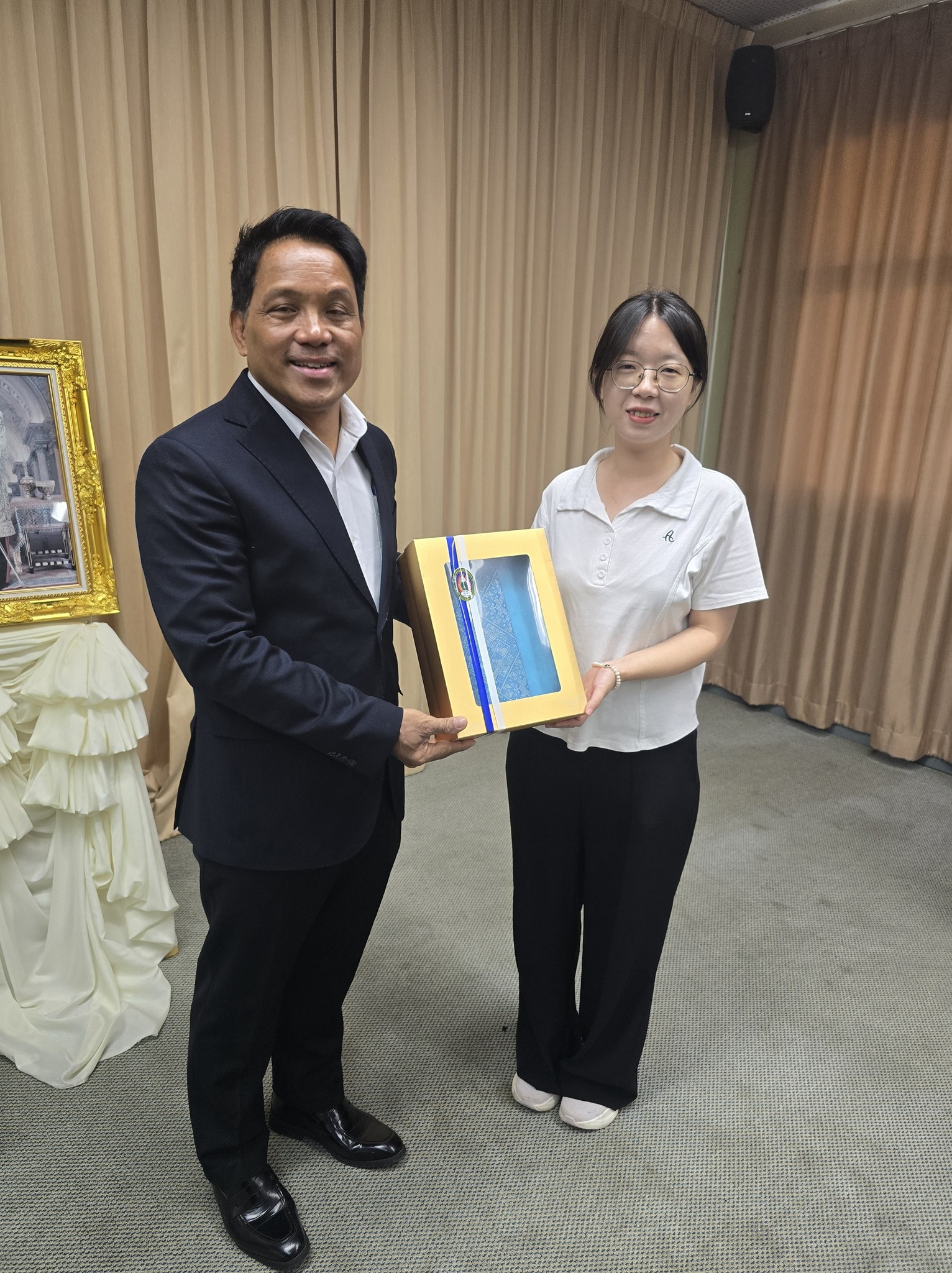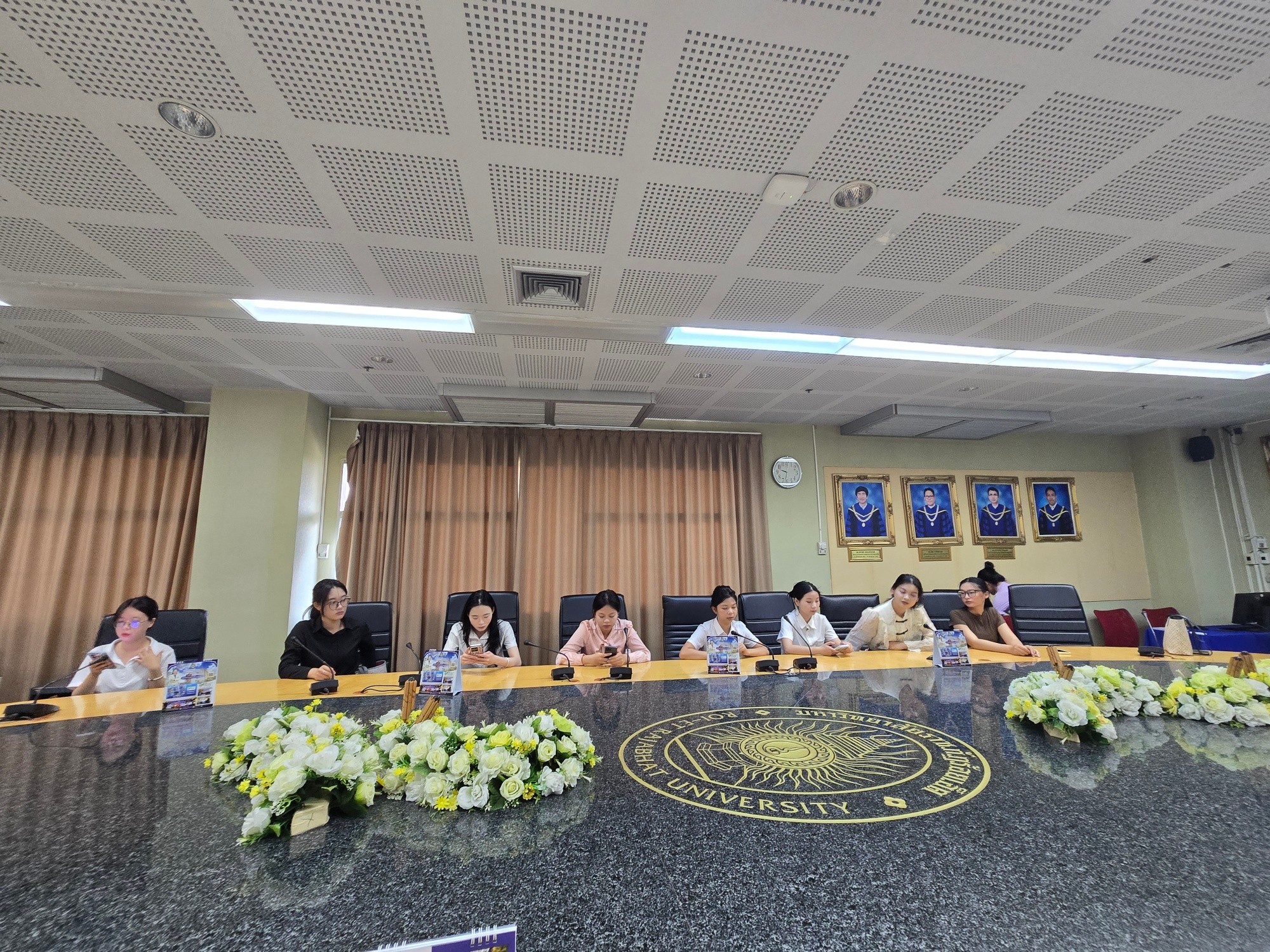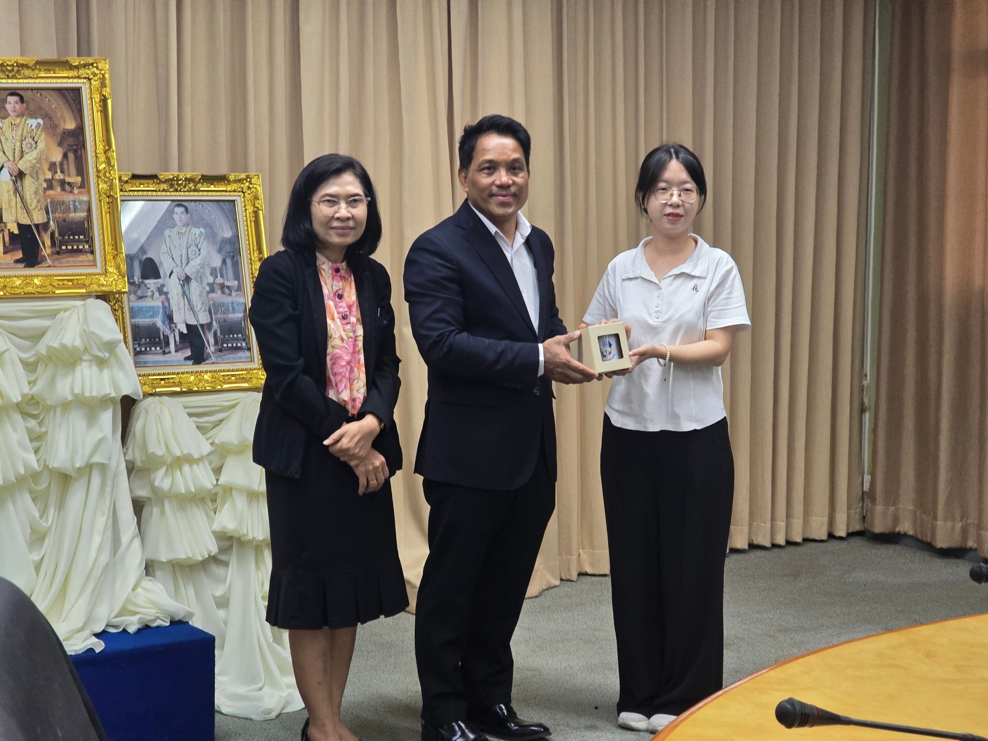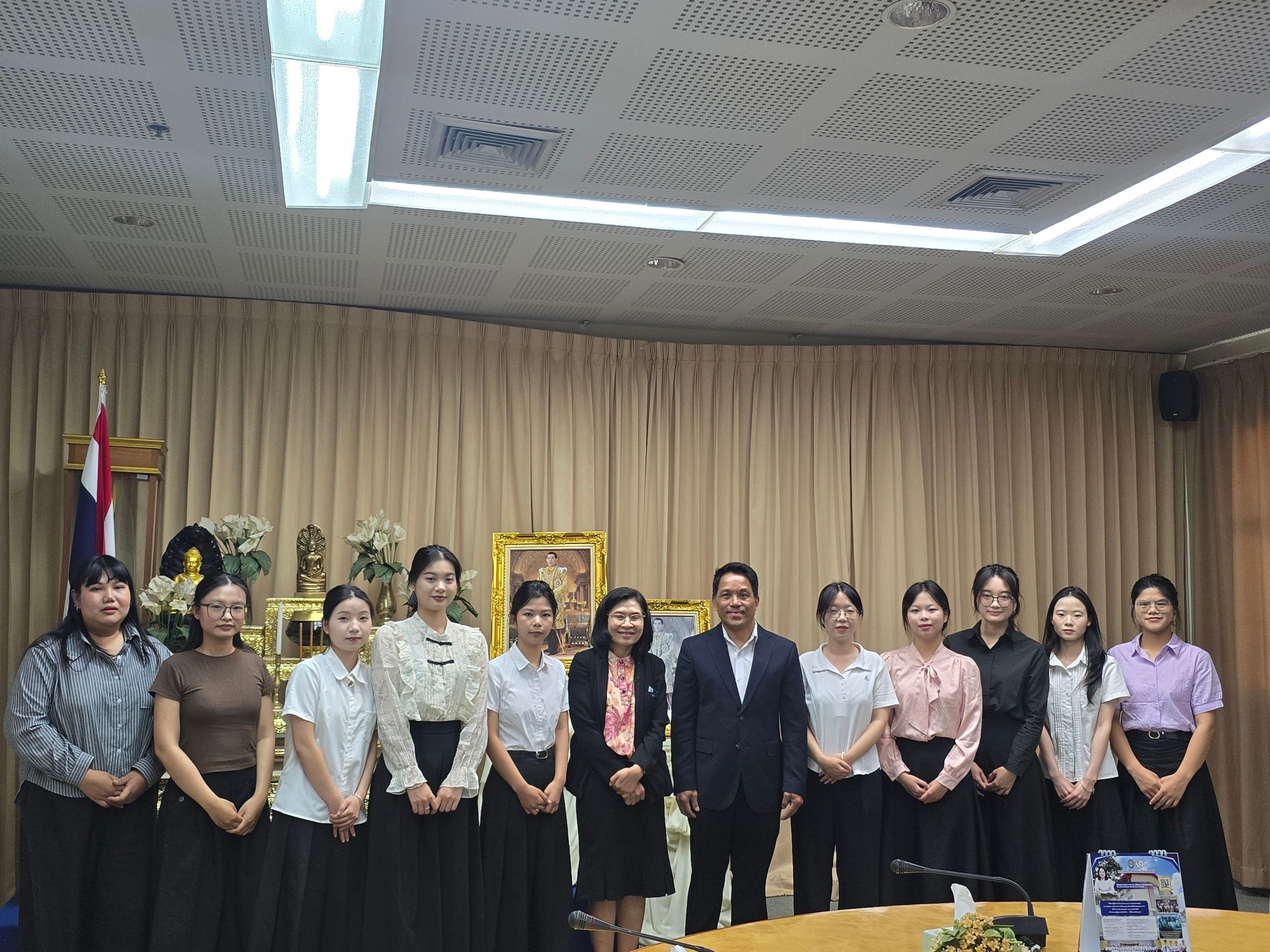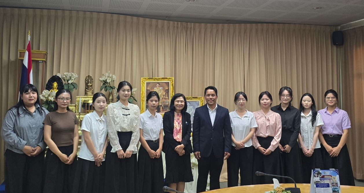 อาจารย์孟令宇 พร้อมด้วยนักศึกษาแลกเปลี่ยนจากมหาวิทยาลัยไป่เซ่อ สาธารณรัฐประชาชนจีน ได้เข้าพบ อธิการบดี ท่าน ผศ.ดร.วิชิต กัมมันตะคุณ และ รองอธิการบดีฝ่ายวิชาการฯ ท่าน ผศ.ดร.ธนาภรณ์ พันทวี เพื่อกล่าวลาเนื่องในโอกาสสิ้นสุดโครงการแลกเปลี่ยนและเดินทางกลับประเทศจีน