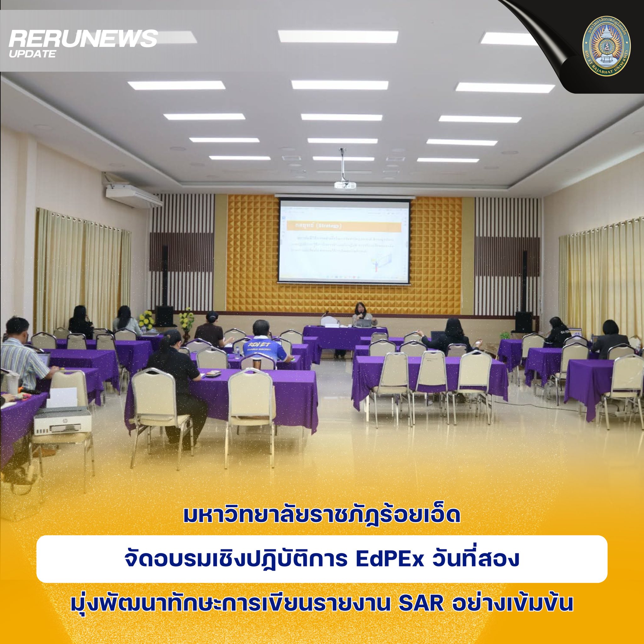 วันนี้ (26 เมษายน 2569) เวลา 09.00 น.งานมาตรฐานและประกันคุณภาพ กองนโยบายและแผน สำนักงานอธิการบดี มหาวิทยาลัยราชภัฏร้อยเอ็ด จัดกิจกรรมอบรมเชิงปฏิบัติการ “การเขียนรายงานการประเมินตนเองตามเกณฑ์คุณภาพการศึกษาเพื่อการดำเนินการที่เป็นเลิศ (EdPEx: Education Criteria for Performance Excellence)” เป็นวันที่สอง ณ ห้องประชุม 1 คณะพยาบาลศาสตร์ มหาวิทยาลัยราชภัฏร้อยเอ็ด
