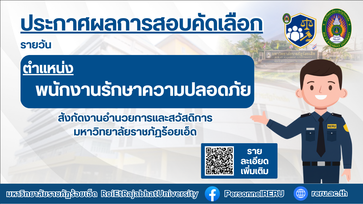 ประกาศผลการสอบคัดเลือกเพื่อบรรจุเป็นลูกจ้างรายวัน ตำแหน่งพนักงานรักษาความปลอดภัย มหาวิทยาลัยราชภัฏร้อยเอ็ด
