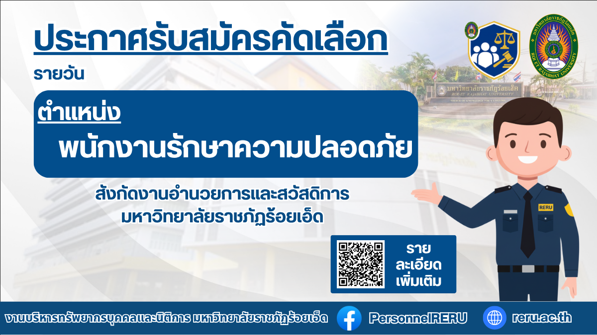 ประกาศรับสมัครพนักงานรักษาความปลอดภัย (4 อัตรา) มหาวิทยาลัยราชภัฏร้อยเอ็ด