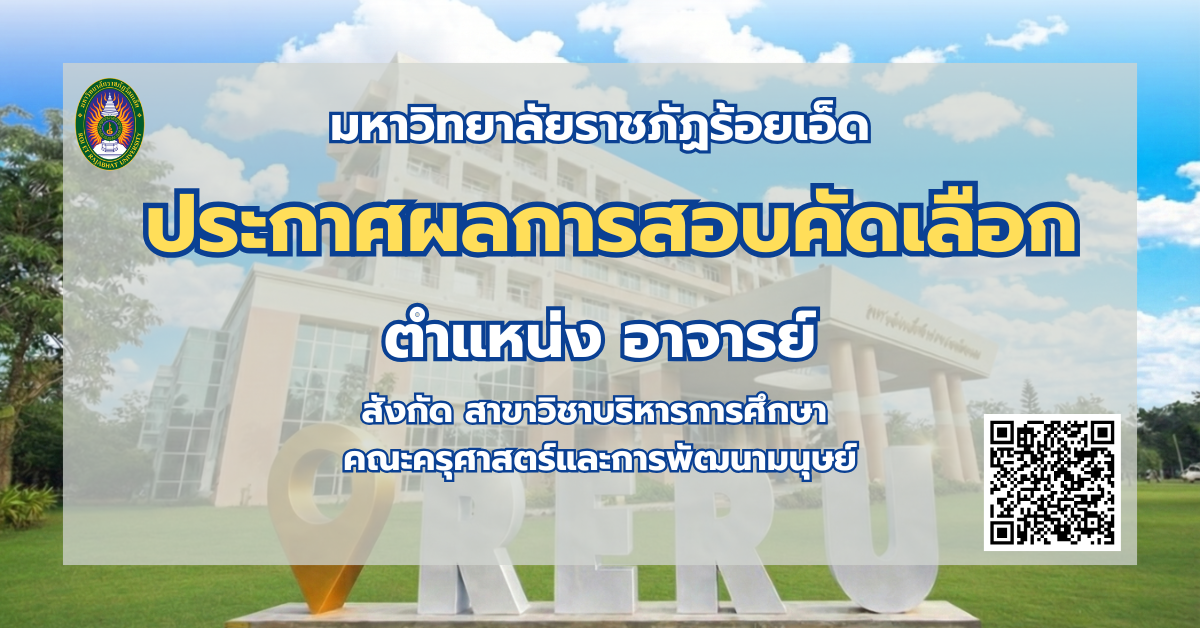 ประกาศผลการสอบคัดเลือกตำแหน่งอาจารย์ สาขาบริหารการศึกษา คณะครุศาสตร์และการพัฒนามนุษย์ มหาวิทยาลัยราชภัฏร้อยเอ็ด พร้อมรายละเอียดการรายงานตัว