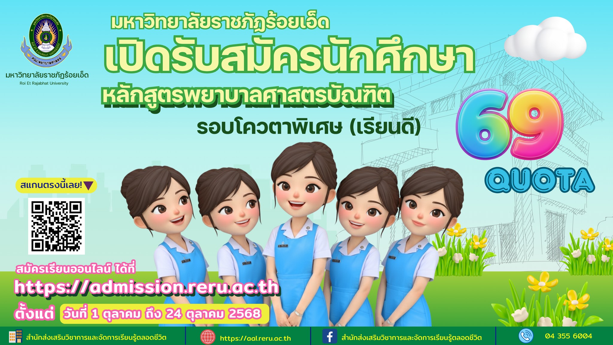 โอกาสดีสำหรับน้องๆ ที่ใฝ่ฝันอยากเป็น “พยาบาล” มหาวิทยาลัยราชภัฏร้อยเอ็ด
