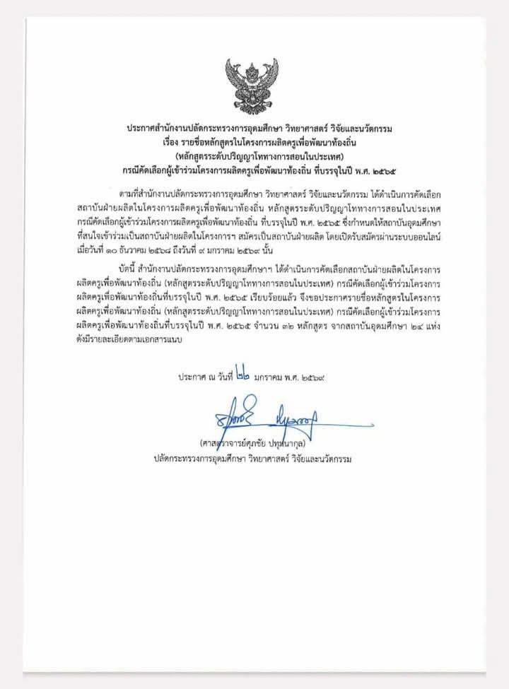 สาขาหลักสูตรและการเรียนการสอน ๅได้รับคัดเลือกให้เป็นหลักสูตรรับสมัครคัดเลือกเพื่อรับทุนการศึกษา ระดับปริญญาโท จากกระทรวงอุดมศึกษา วิทยาศาสตร์ วิจัยและนวัตกรรม