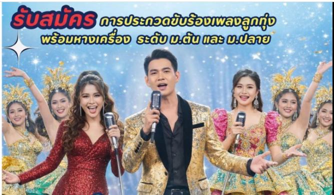 เชิญชวนนักเรียน ในระดับมัธยมศึกษาตอนต้น / ตอนปลาย ส่งทีมแข่งขัน ร้องเพลงประกอบหางเครื่อง …. ชิงถ้วยเกียรติยศ และเงินรางวัลมูลค่ารวมกว่า 12,000 บาท