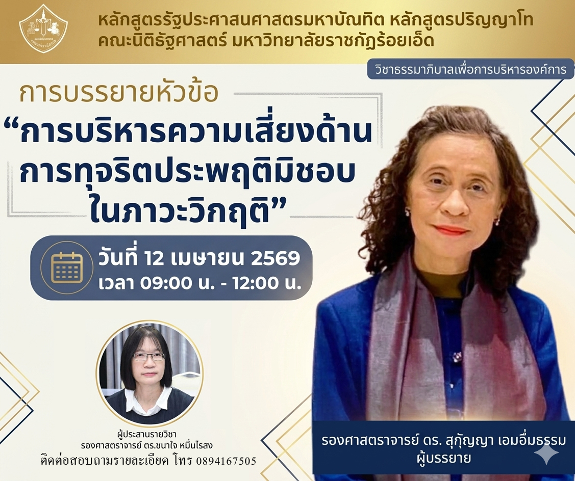 การบรรยาย การบริหารความเสี่ยงด้านการทุจริตประพฤติมิชอบในภาวะวิกฤติ วันที่ 12 เมษายน 2569